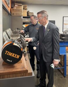 During the visit, organized by GoRail, Rep. Burchett joined Timken representatives for a closer look at the facility’s work on the inspection, repair, and remanufacturing of industrial bearings used in the rail industry. The tour highlighted how refurbished rail wheel bearings can help improve efficiency, reduce costs, and extend the lifecycle of critical rail components.